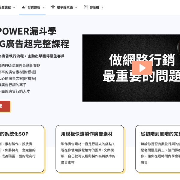直接做好的模板網站 只要修改網站裡的圖片 & 文字內容就可以輕易架好一個完整的網站! Simple 多功能網站 – 快速VPS主機 From: NT$400 / 月 含 30 天 免費試用 Select options POWER多功能網站 – 快速VPS主機 From: NT$400 / 月 含 30 天 免費試用 Select options 理想事業官網(課程學院使用) 台灣極速主機 From: NT$900 / 月 和 NT$36,000 註冊費 Select options 空白WP網站 快速VPS主機 From: NT$400 / 月 含 30 天 免費試用 Select options Elementor單頁模板 專門為中文字體設計的模板需搭配Elementor使用 POWER漏斗學模板 NT$750 NT$299 Add to cart 網站相關服務 一站搞定所有網站問題有問題都來問! 電子報發送額度 From: NT$100 / 月 含 7 天 免費試用 Select options