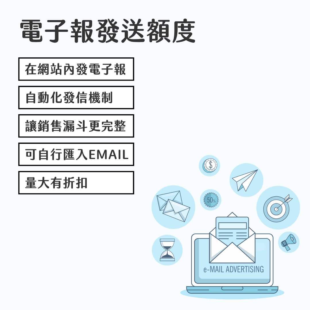若每月發信量超過20000封,可彈性調整額度,加購價為每1000封信/$50 (每封信$0.05)